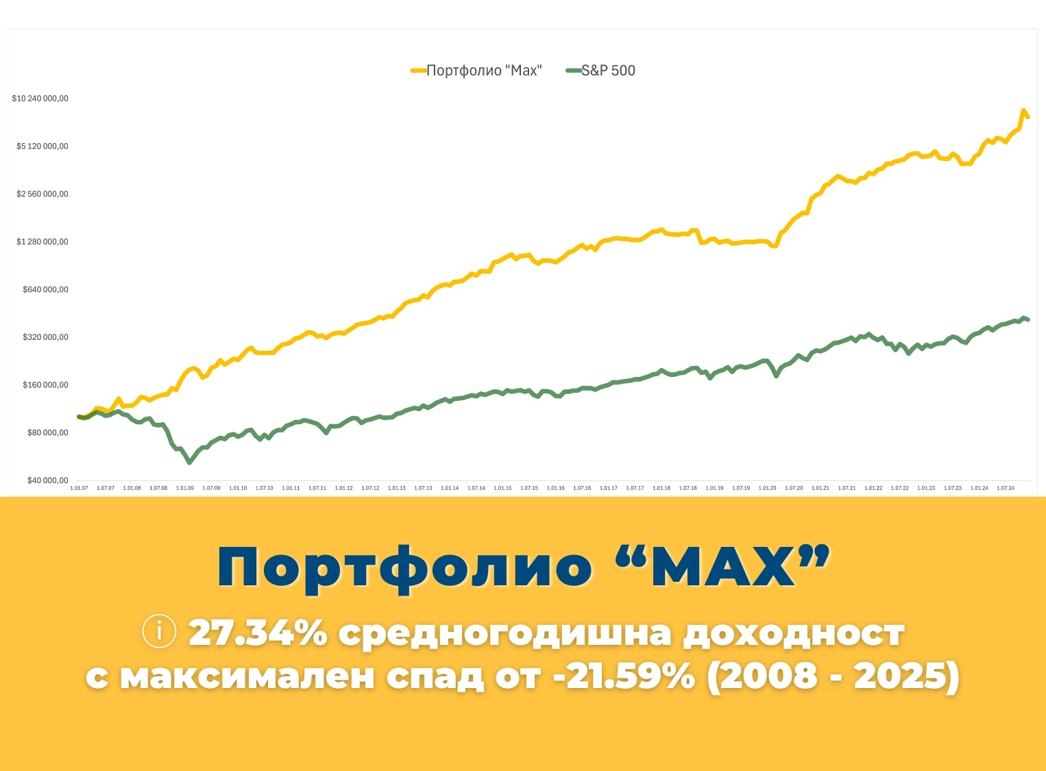 1. Портфолио “MAX” – съставено е от две стратегии и цели максимална доходност при контролиран риск