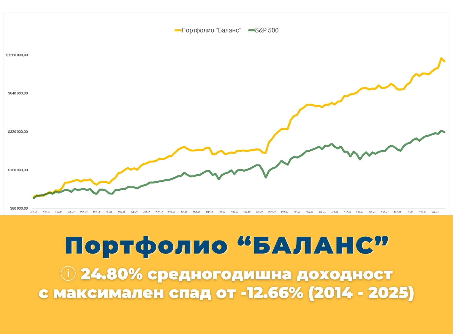 3. Портфолио „Баланс“ - комбинира трите стратегии в едно портфолио и диверсифицира допълнително подходите и видовете активи.
